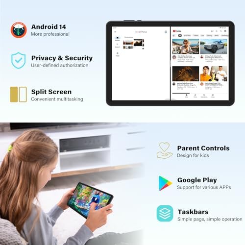 Wow, dieses Android 14 Tablet hat echt Power! Mit nem riesigen 10 Zoll Display und krassen 36GB RAM plus 128GB Speicher - da läuft alles butterweich. Und wenn dir das nicht reicht, kannst du sogar ne 1TB SD-Karte reinmachen! Der Octa-Core Prozessor mit 2.0Ghz sorgt für Speed ohne Ende. Mit 8000mAh Akku hält das Ding ewig, und die Dual-Kamera (5MP vorne, 8MP hinten) macht richtig gute Bilder. Komplett mit Bluetooth-Tastatur, Maus, faltbarem Case und sogar nem Eingabestift - perfekt für Arbeit und Entertainment. 5G WLAN, Bluetooth 5.0 und GPS sind natürlich auch dabei. Google GMS-zertifiziert, also kannst du alle Apps aus dem Play Store installieren. Ob fürs Büro, Schule oder Entertainment - dieses Tablet rockt einfach!