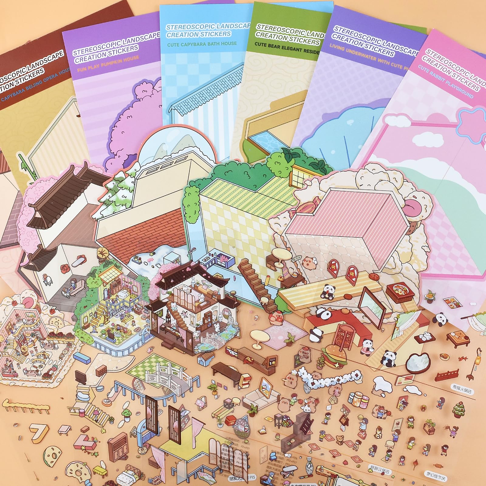 Bastelfans, diese 3D House Stickers sind total entspannend! 20 verschiedene Miniatur-Szenen zum Gestalten - jedes Set 19x13cm groß. Aus Papier und PET - hochwertig und einfach zu verarbeiten.