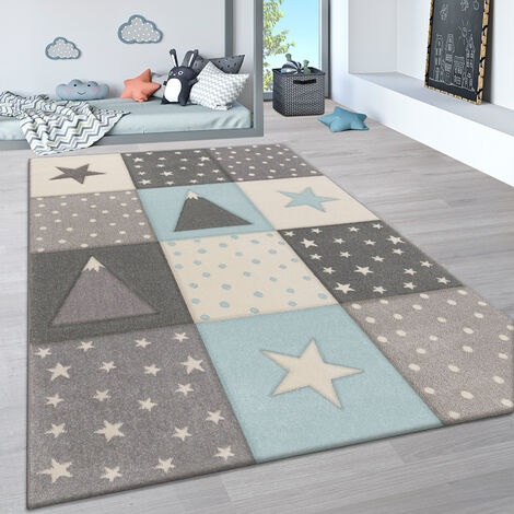 Kinderteppich 80x150cm - 3D Sterne & Punkte Design Blau