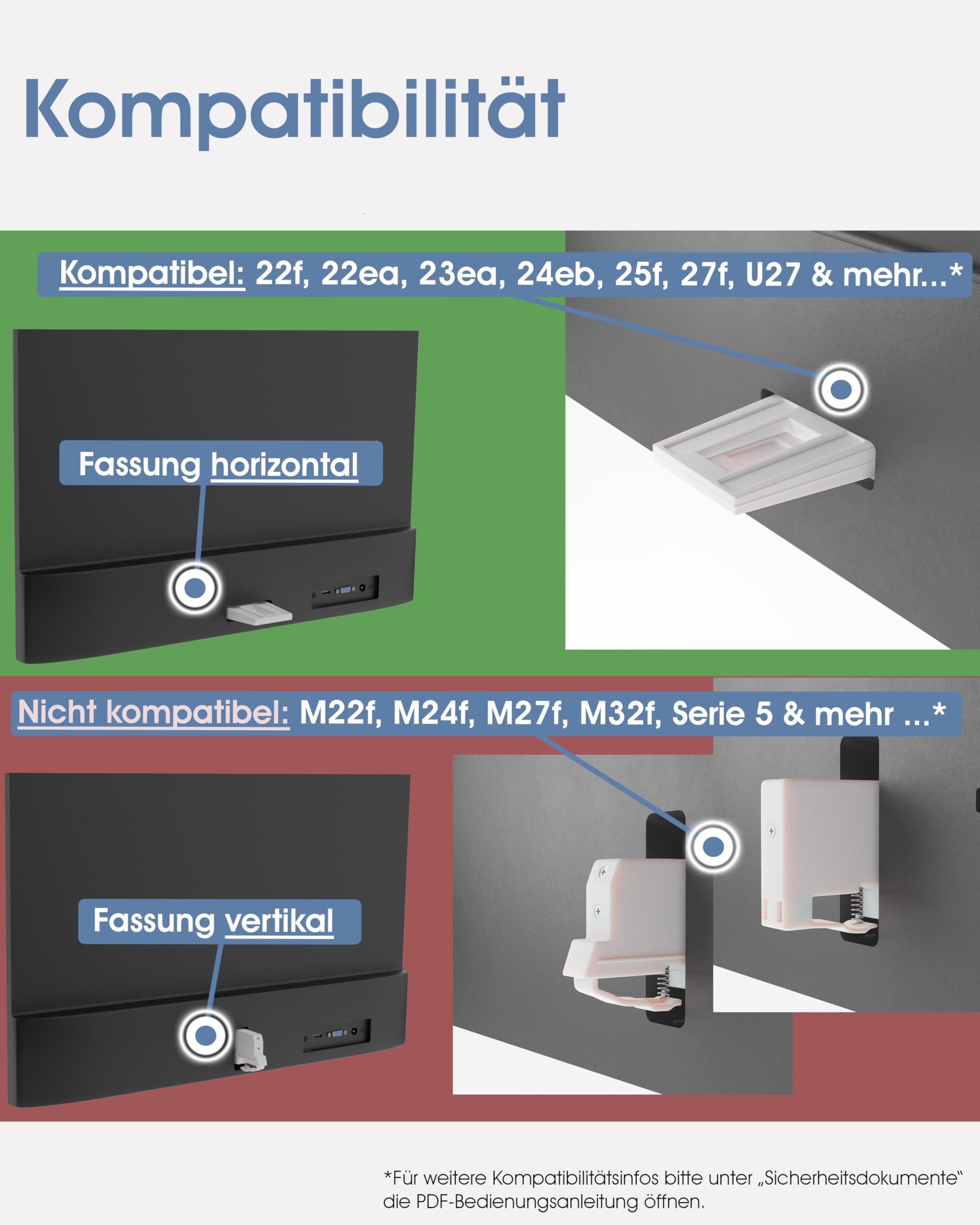 Endlich die perfekte Monitorhöhe für deine Ergonomie! Dieser 3IDEE VESA Adapter macht auch nicht-VESA-fähige Monitore höhenverstellbar. Bis zu 15cm Verstellung (7,5cm nach oben/unten) - komplett werkzeuglos! Passt für Monitore von 13-27 Zoll mit bis zu 8kg Gewicht. Kompatibel mit VESA 75x75 und 100x100 Halterungen. Die schützenden Filz-Pads verhindern Kratzer an deinem Monitor. Aus pulverbeschichtetem Stahl für maximale Stabilität und Langlebigkeit. Perfekt für alle die unter Nacken- oder Rückenschmerzen leiden - stell deinen Monitor jetzt in die optimale Position! Einfach an der Halterung befestigen, Monitor einklicken und in die perfekte Höhe schieben. Ob im Büro oder Home-Office - dein Rücken wird es dir danken. Die einfachste Lösung für ergonomisches Arbeiten am Computer!