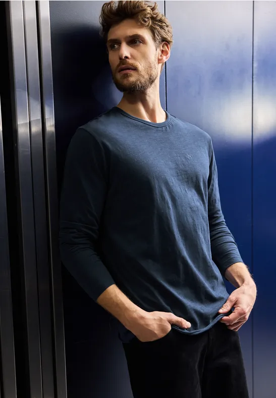 3er Pack Langarmshirts Herren - Lang Geschnittene Basic T-Shirts