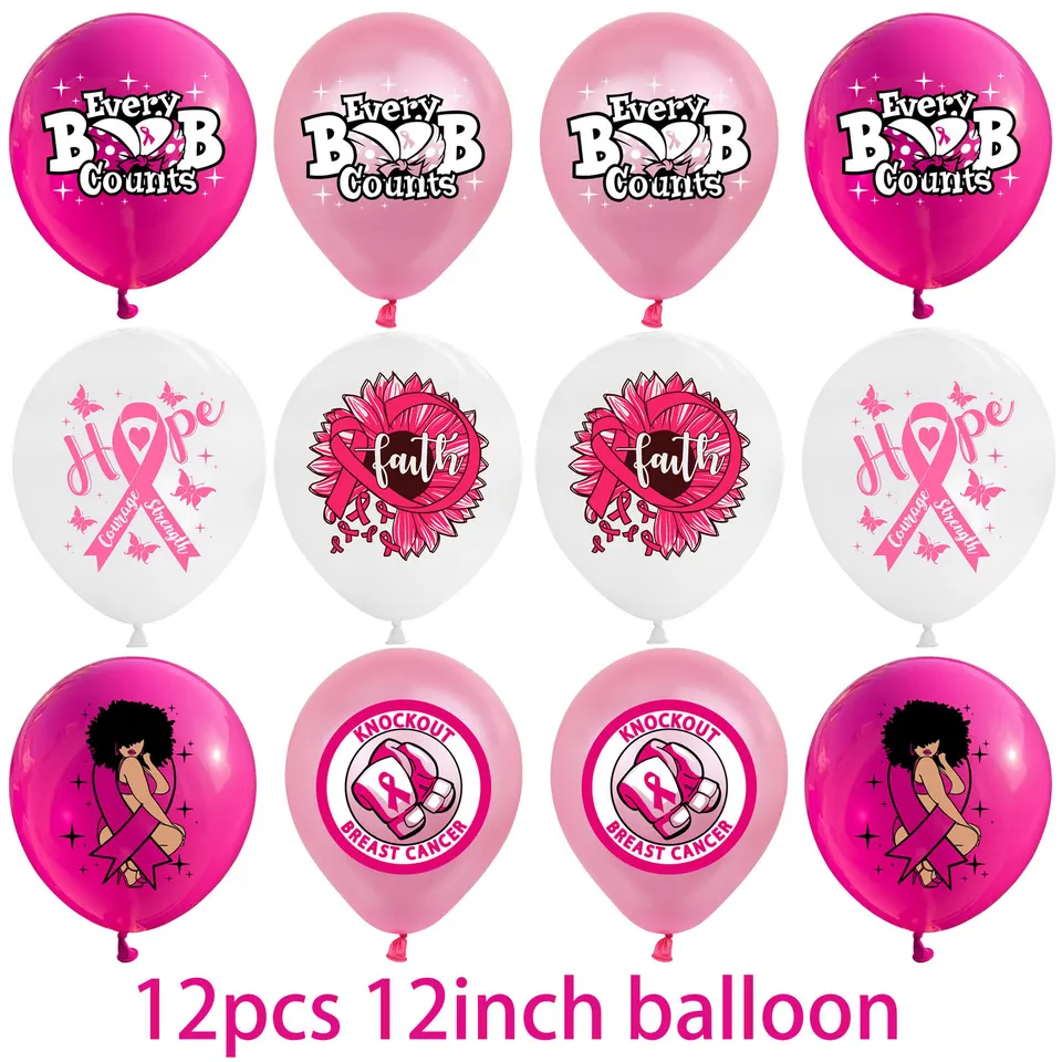 3er Set Brustkrebs Ballons Mit Rosa Schleife - Mylar Folienballons Für Spendenaktionen