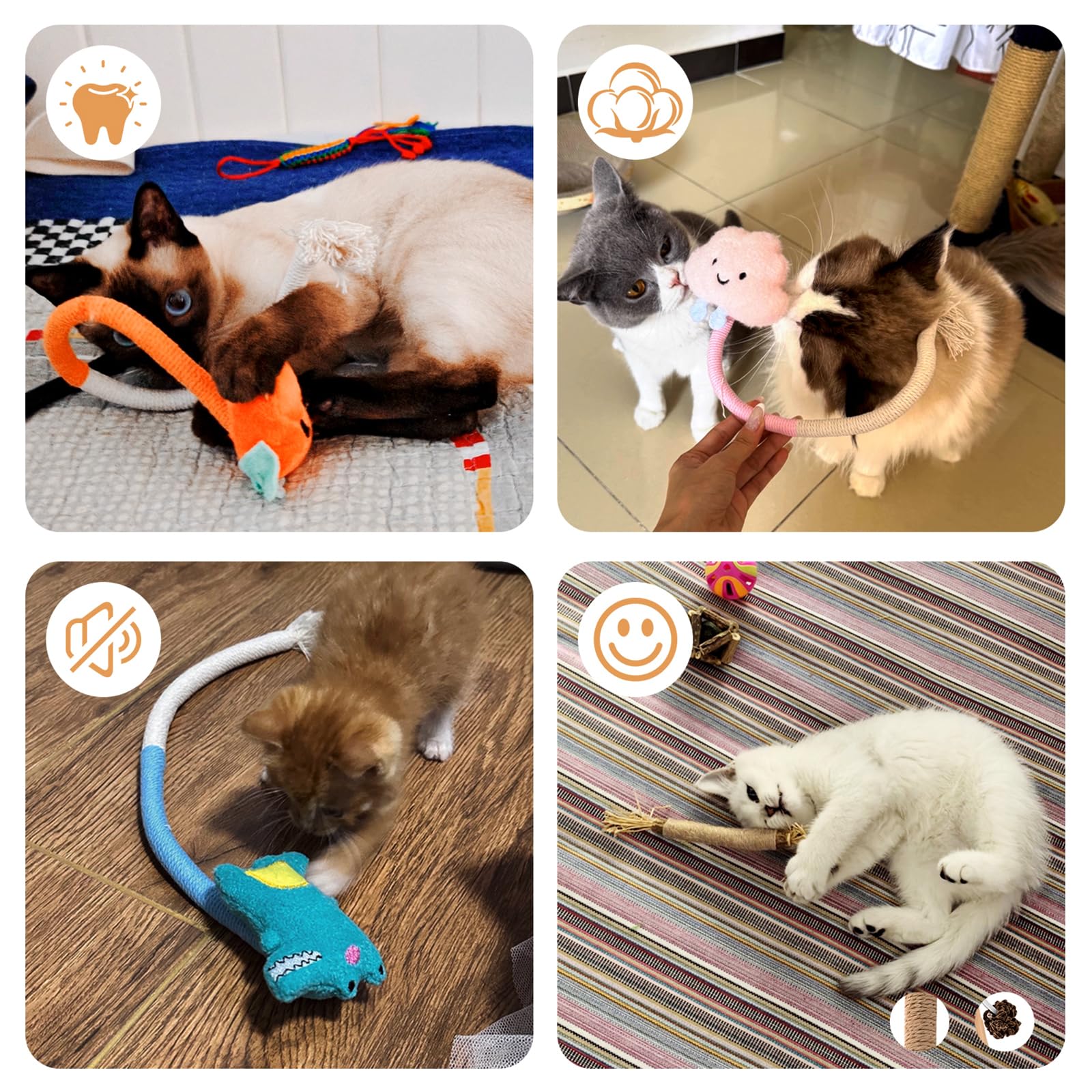Neerow Katzenminze Beißseil - 3er Set Bunte Kauspielzeuge | Für Zahnpflege & Gegen Mundgeruch