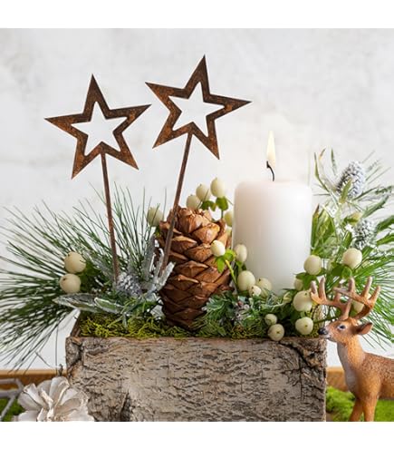 Verleihe deinem Garten einen rustikalen Charme mit diesen coolen rostigen Sternen! Das 3er Set aus robustem Metall in authentischer Rostoptik bringt sofort vintage Flair in deine Beete, Blumenkästen oder auf den Balkon. Die Sterne sind witterungsbeständig und halten auch bei Frost und Kälte problemlos durch - du kannst sie also das ganze Jahr über draußen lassen. Einfach in die Erde stecken und schon verwandeln sie jeden langweiligen Gartenbereich in einen echten Hingucker. Die klassische Sternform passt zu jedem Gartentil und die Rostoptik verleiht dem Ganzen diese besondere, zeitlose Note. Super als Geschenk für Gartenliebhaber oder um dem eigenen Outdoor-Bereich etwas Persönlichkeit zu verleihen. Kein Verrosten, keine komplizierte Pflege - einfach hinstellen und sich an dem einzigartigen Look erfreuen. Dein Garten wird's dir danken!