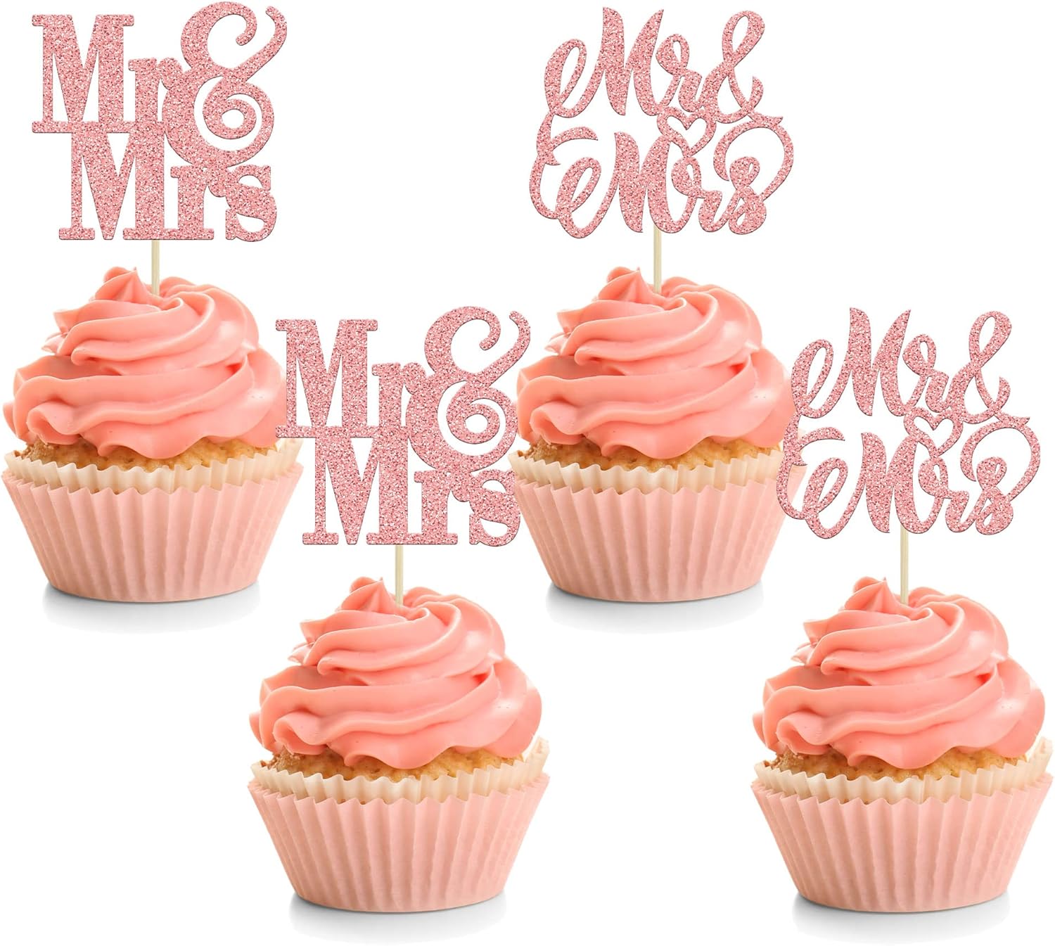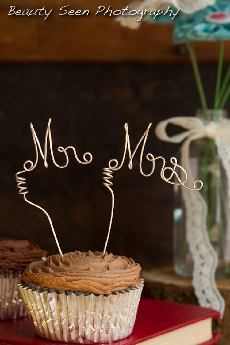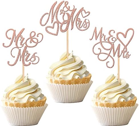 Mr & Mrs Cupcake Topper 3er Set - Gold Glitter Hochzeitsdeko Für Torten & Cupcakes