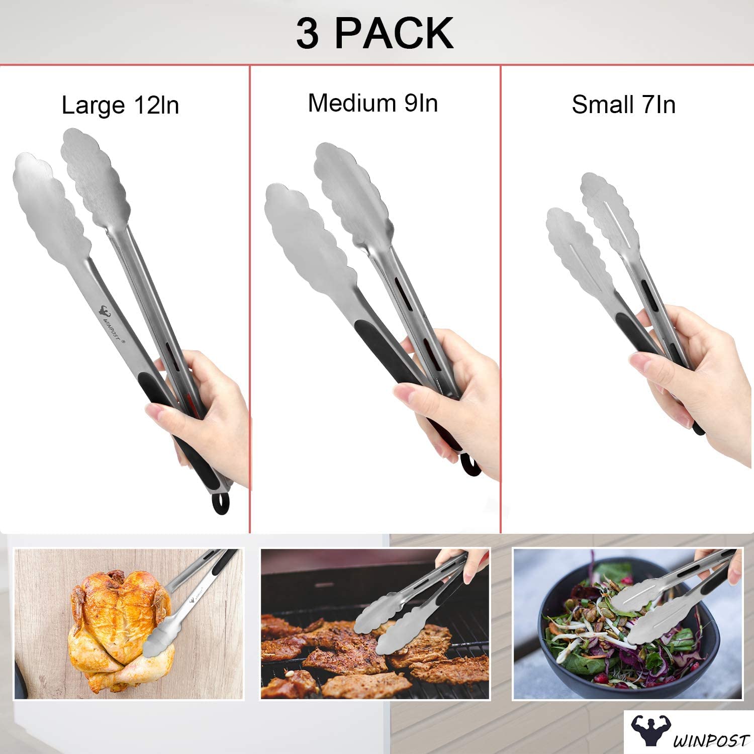 WUGAUWOR 3er Set Küchenzangen Edelstahl 304 - Grillzangen & Kochpinzette