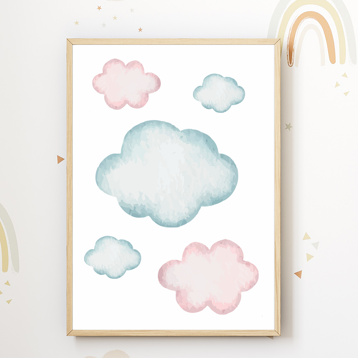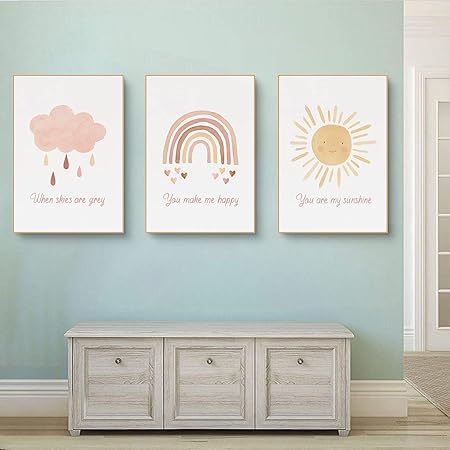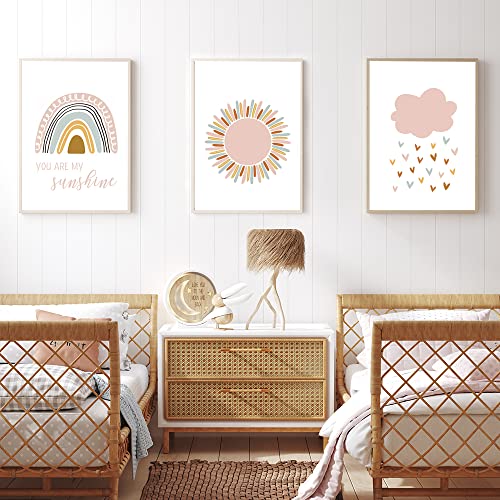 EXQULEG 3er Set Kinderposter A4 - Regenbogen Wolken Sonne Babyzimmer Deko