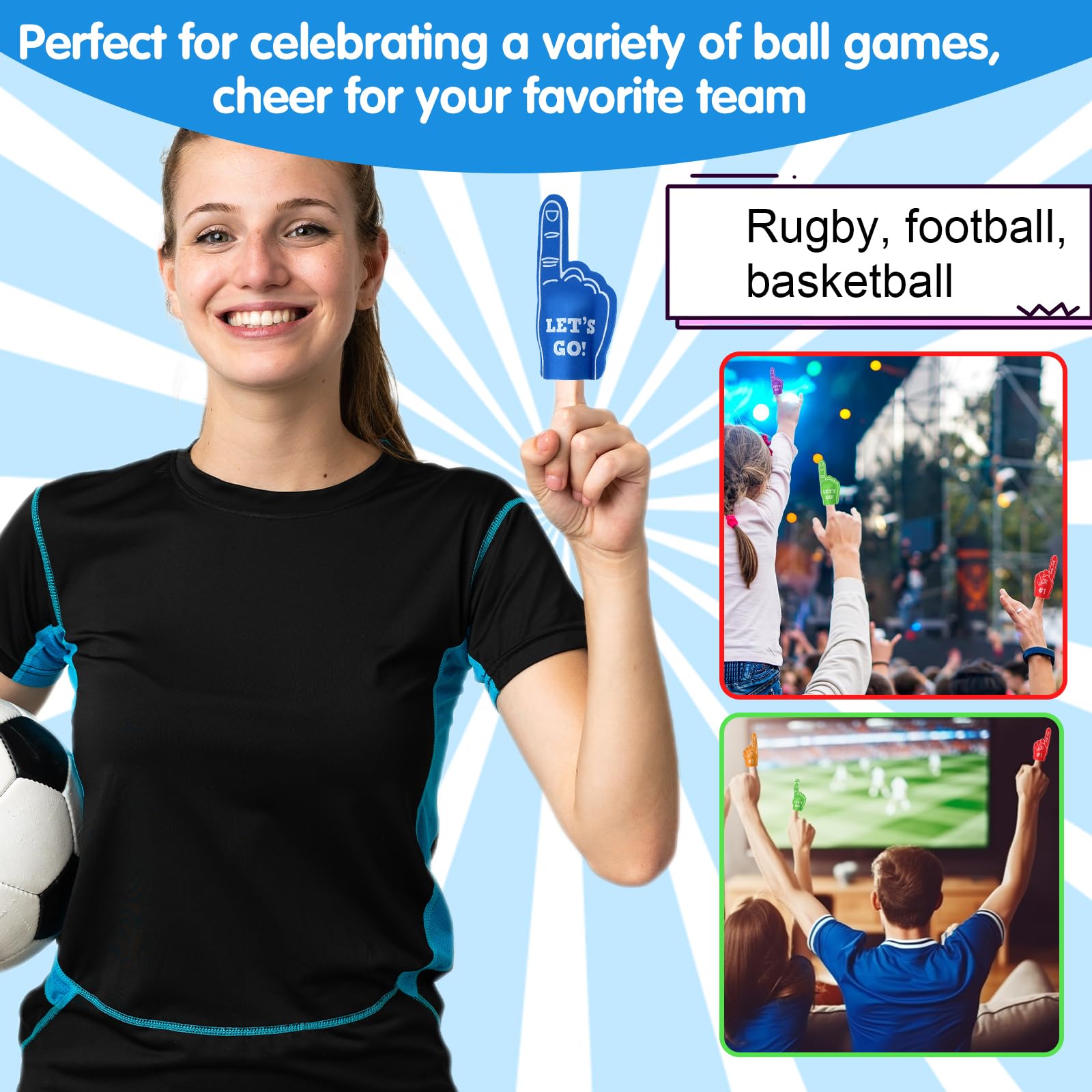 Mach lautstark Stimmung bei jedem Sportevent! Diese 3 leuchtend grünen Schaumstoff-Finger sind perfekt für Cheerleading, Fußballspiele, Partys und Konzerte. Aus weichem Schaumstoff gefertigt, passen sie den meisten Händen und sind super leicht. Einfach über die Finger stülpen und losjubeln! Maße: 45x23cm - damit wirst du garantiert gesehen. Ideal für Sportfans, Cheerleader oder einfach für gute Laune auf jeder Feier. Wiederverwendbar und langlebig. Bring Leben in die Menge und zeig deine Unterstützung mit diesen lustigen Fan-Fingern!