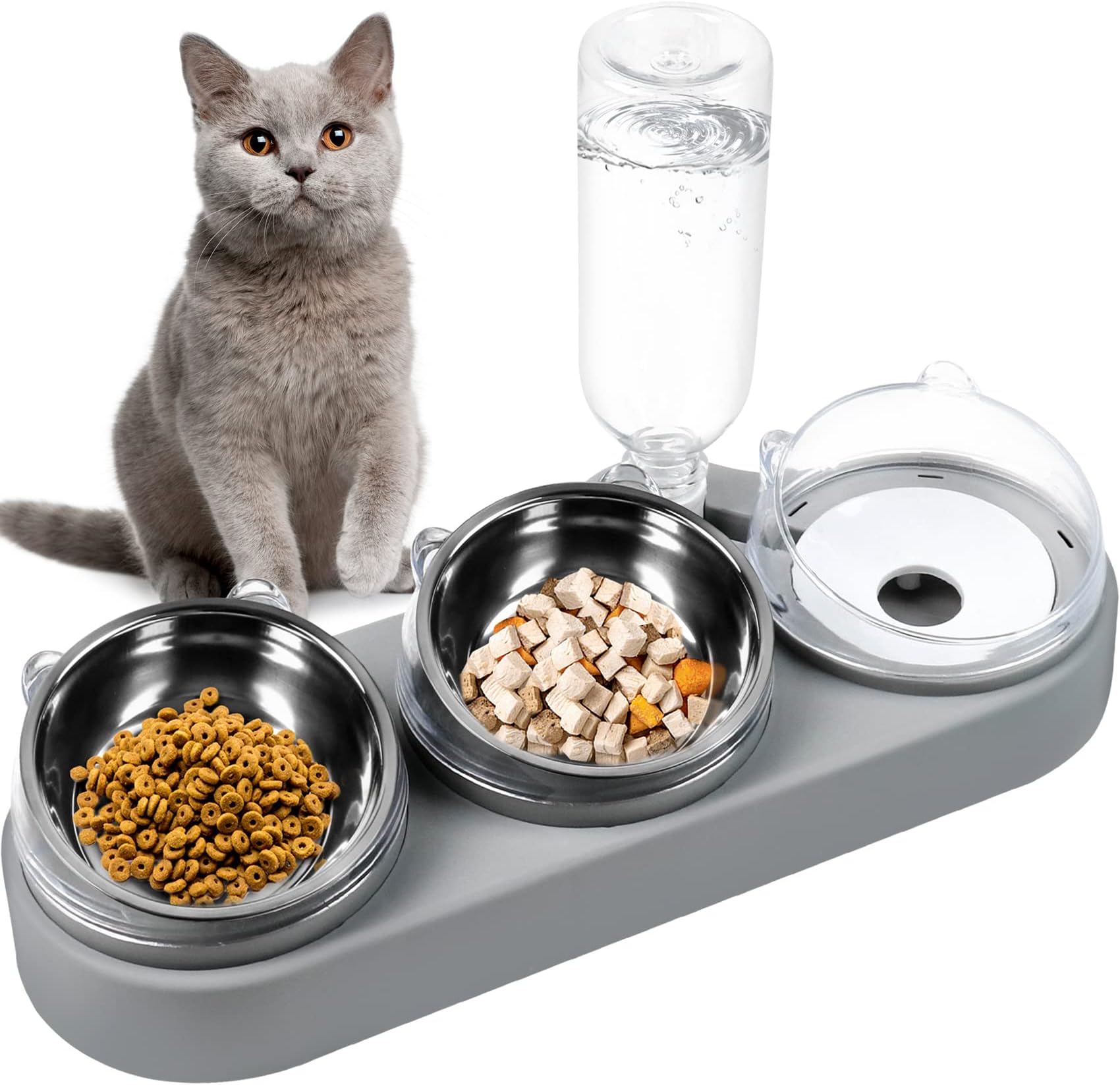 Marchul 3in1 Katzennapf Set - Erhöhter Futternapf Mit Wasserspender & Edelstahlschalen