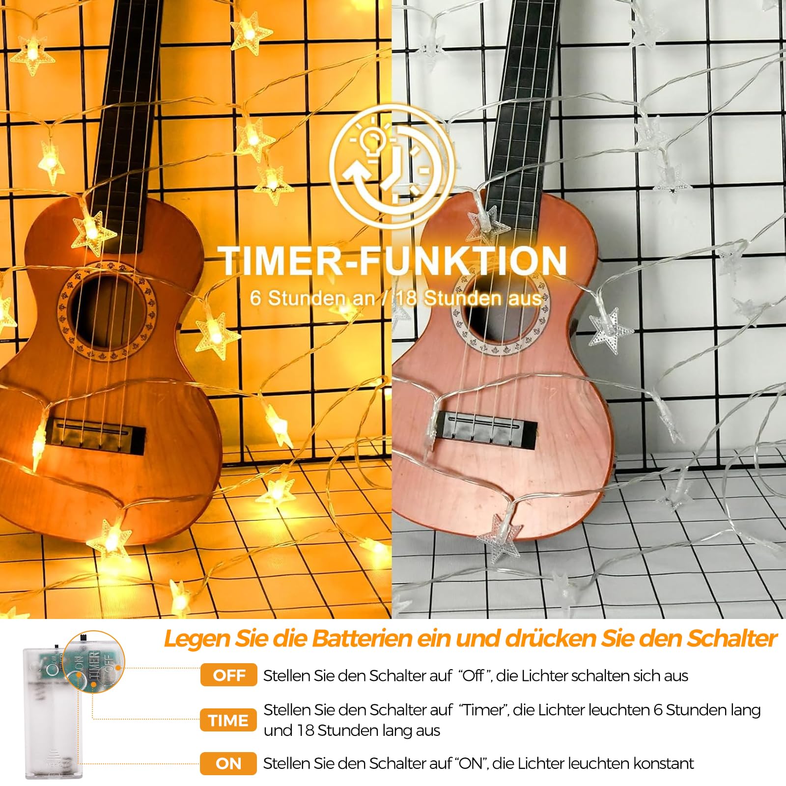 Zauberhafte Sternen-Stimmung für dein Zuhause! Diese niedliche Lichterkette mit 20 leuchtenden Sternen bringt magische Atmosphäre in jeden Raum. Die 3 Meter lange Kette wird mit Batterien betrieben (nicht im Lieferumfang) - super praktisch für Orte ohne Steckdose in der Nähe. Die sternförmigen LEDs verbreiten ein warmes, einladendes Licht, perfekt um gemütliche Stimmung zu schaffen. Vielseitig einsetzbar: Dekoriere damit dein Kinderzimmer, das Wohnzimmer, die Terrasse oder verwende sie als festliche Dekoration für Hochzeiten, Geburtstage, Weihnachten oder Silvester. Auch für DIY-Projekte wie Fotowände oder Geschenkverpackungen ideal. Die Sterne sind gleichmäßig verteilt und sorgen für eine harmonische Beleuchtung. Einfach die Batterien einsetzen, die Kette nach Wunsch arrangieren und den Zauber genießen! Perfekt für alle, die ihrem Zuhause eine persönliche Note verleihen möchten. Schaffe dir deine eigene kleine Sternennacht - ganz ohne Aufwand!