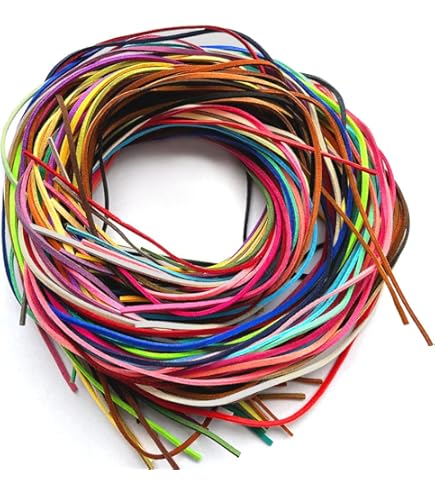 Kreativität pur! Dieses Set enthält 60 verschiedene Farben Lederschnur - jedes Band 1 Meter lang und 3 mm breit. Aus weichem Kunstwildleder, perfekt für Armbänder, Halsketten und DIY Projekte.