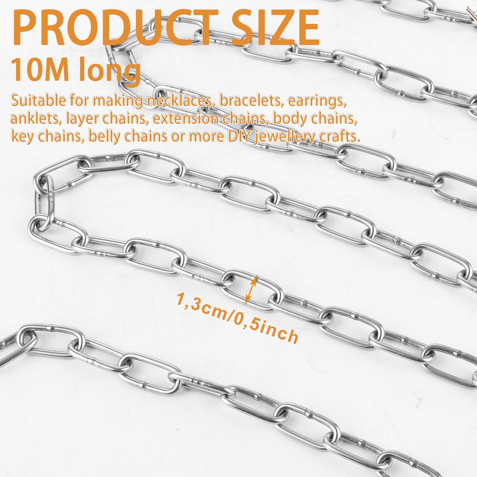 Diese 10 Meter Stahlkette ist ein echter Allrounder für Haus, Garten und unterwegs! Aus robustem Kohlenstoffstahl mit 3mm Stärke und schwarzer Beschichtung, die rostbeständig ist und nicht abblättert. Du kannst die Kette einfach auf die gewünschte Länge kürzen - ob kurz für ein Hundehalsband oder lang für Absperrungen. Die galvanisierte Oberfläche schützt vor Korrosion und macht die Kette langlebig. Ob für Schaukeln im Garten, Wäscheleinen, Kronleuchter, Fahrradschlösser oder als Sicherung für Tore - diese Kette hält, was sie verspricht. Mit ihrer starken Tragfähigkeit ist sie sowohl für den privaten als auch gewerblichen Gebrauch ideal. Ein praktisches Stück Ausrüstung, das du immer wieder verwenden kannst!