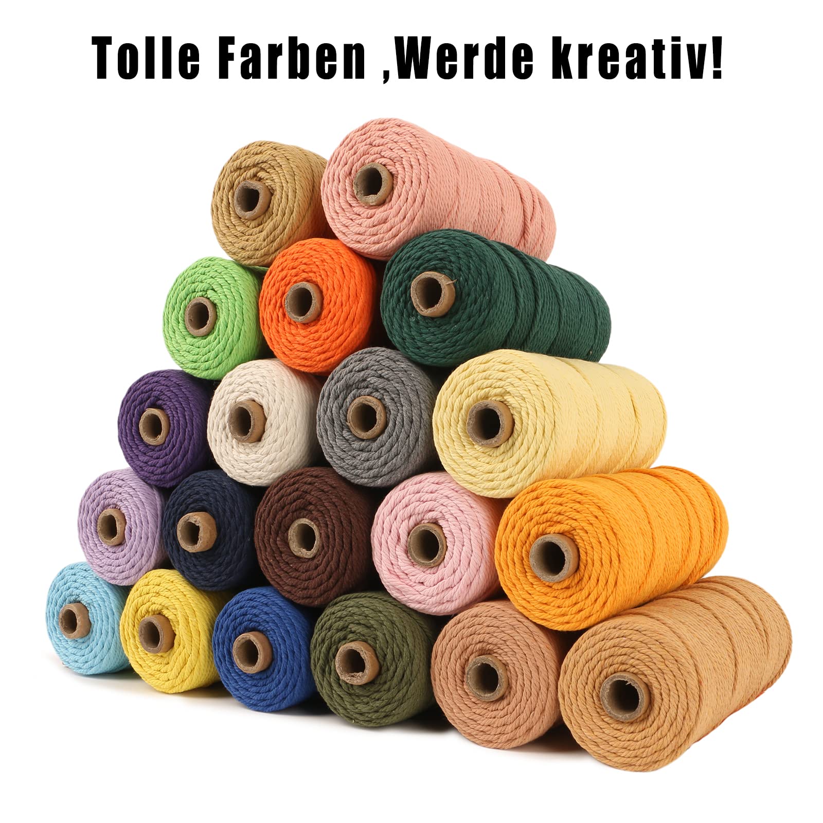 Makramee Garn 3mm X 100m - 100% Baumwolle In 20 Farben Für DIY Projekte
