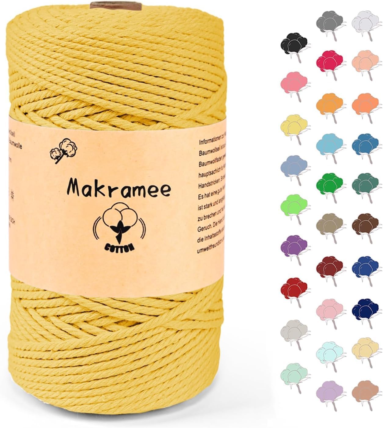 Total vielseitig dieses Makramee-Garn! Mit 100 Metern Länge und 3mm Stärke hast du genug Material für alle möglichen DIY-Projekte. Ob Wandbehänge, Traumfänger, Pflanzenaufhänger oder Wohnungsdekoration - das 4-lagige Garn aus 45% Baumwolle und 55% Polyester ist super flexibel und dennoch extrem reißfest. Die wunderschöne Karamellfarbe passt in jede Einrichtung. Perfekt für Einsteiger: Das Garn ist weich, geruchlos und leicht zu verknoten. Kein Fusseln, keine chemischen Farbstoffe - einfach angenehm zu verarbeiten. Du kannst deiner Kreativität freien Lauf lassen und einzigartige Stücke erschaffen. Auch als Geschenk für kreative Freunde ideal! Einfach bestellen und losbasteln - dein nächstes DIY-Projekt wartet!