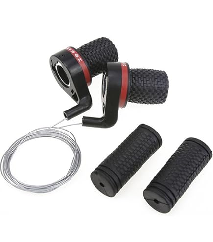 Na, quietschen und klemmen deine alten Schaltgriffe auch? Dieses 3x7 Gang Schaltkit bringt dein Mountainbike wieder auf Vordermann! Einfach die alten Griffe abziehen und die neuen draufstecken. Die Twist-Grip-Technik ist super intuitiv - einfach drehen und schon schaltest du. Die rechte Seite hat 7 Gänge, die linke 3 - macht insgesamt 21 Schaltstufen! Die Anti-Rutsch-Griffe aus weichem Gummi liegen perfekt in der Hand. Mit den langen Schaltzügen (1,3m vorne, 2m hinten) passt das Kit an die meisten Mountainbikes. Einfach montieren und die nächste Bergtour kann kommen!