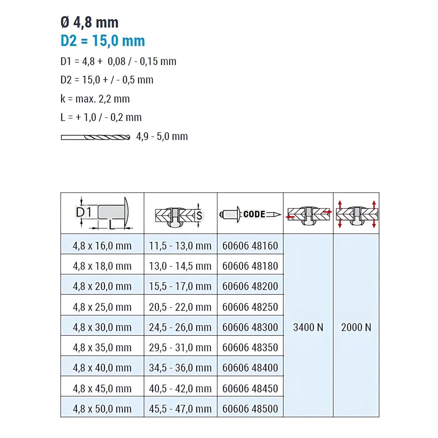 Professionelle Hammerschlagblindnieten von GOEBEL - mit 40 Jahren Erfahrung! Größe 4,8x35mm, Flachkopf-Design. Material: Aluminium-Hülse mit Edelstahl-Dorn (A2). 250 Stück im Pack - genug für große Projekte. Scherbruchlast: 3400N, Zugbruchlast: 2000N - hält bombenfest! Einfache Verarbeitung: Mit Hammer auf Dorn schlagen, schon spreizt sich die Hülse. Perfekt für Dachbau, Baubereich, Befestigungen in Stein oder Beton. Klemmbereich 29,5-31mm - für verschiedene Materialstärken. Mit 5,0mm Bohrer vorbohren - dann passt's perfekt. Ob für Holz, Kunststoff oder Metall - diese Nieten verbinden sicher und dauerhaft. Deutsche Qualität vom Fachmann - damit baust du garantiert stabile Konstruktionen!