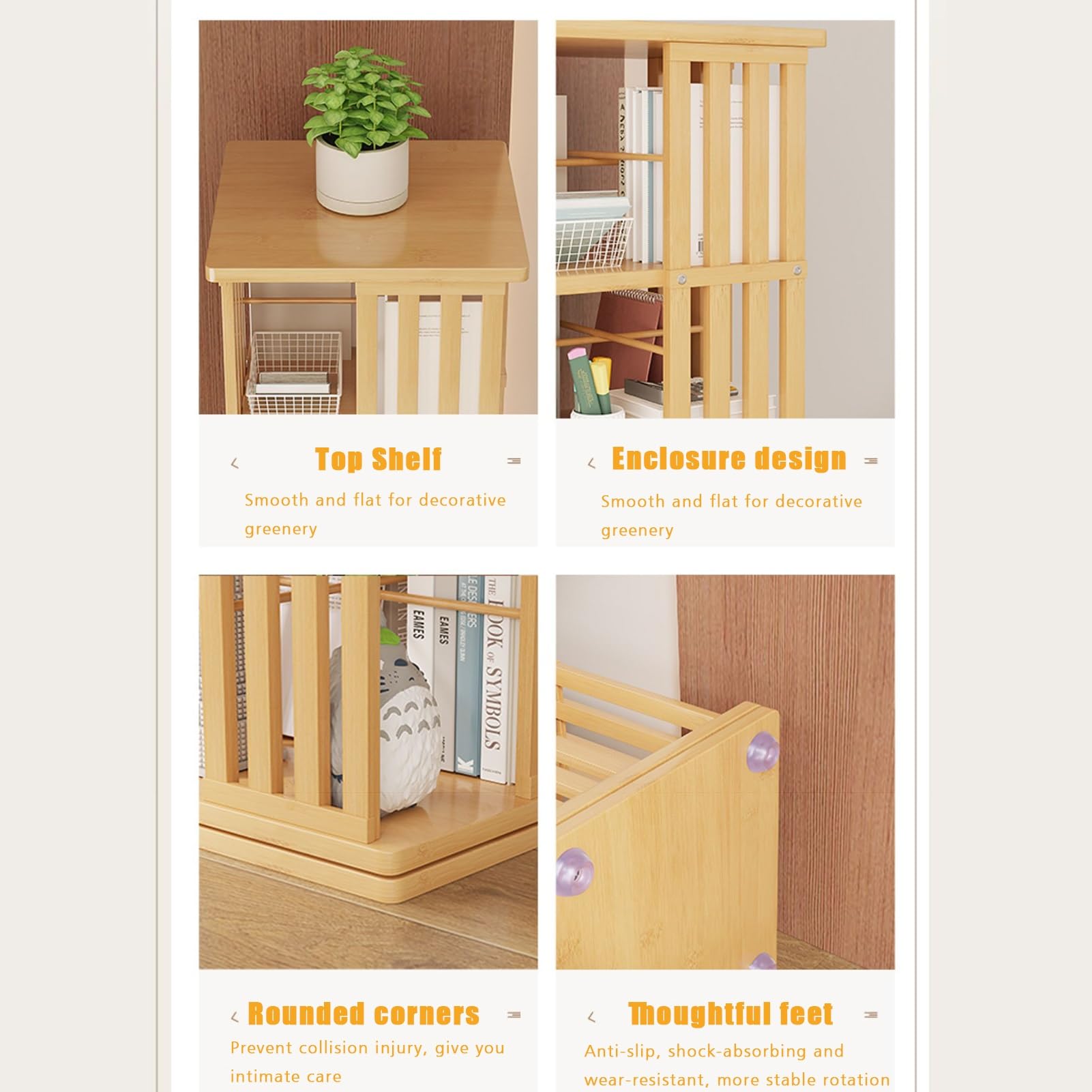 Platzsparend und super praktisch! Dieses 4-etagige Drehregal bringt Ordnung in deine Bücher- und Deko-Sammlung. Der 360° Drehmechanismus läuft butterweich - so kommst du bequem an alles ran. Aus stabilen Holzplatten und Metallstangen, die ein Umkippen der Bücher verhindern. Das quadratische Design bietet mehr Stauraum als runde Regale. Perfekt für Ecken und kleine Räume im Wohnzimmer, Büro oder Schlafzimmer. Einfach in 30 Minuten montiert - alle Teile sind beschriftet. Stilvoll, funktional und ein echter Hingucker. Endlich mehr Ordnung mit Style!