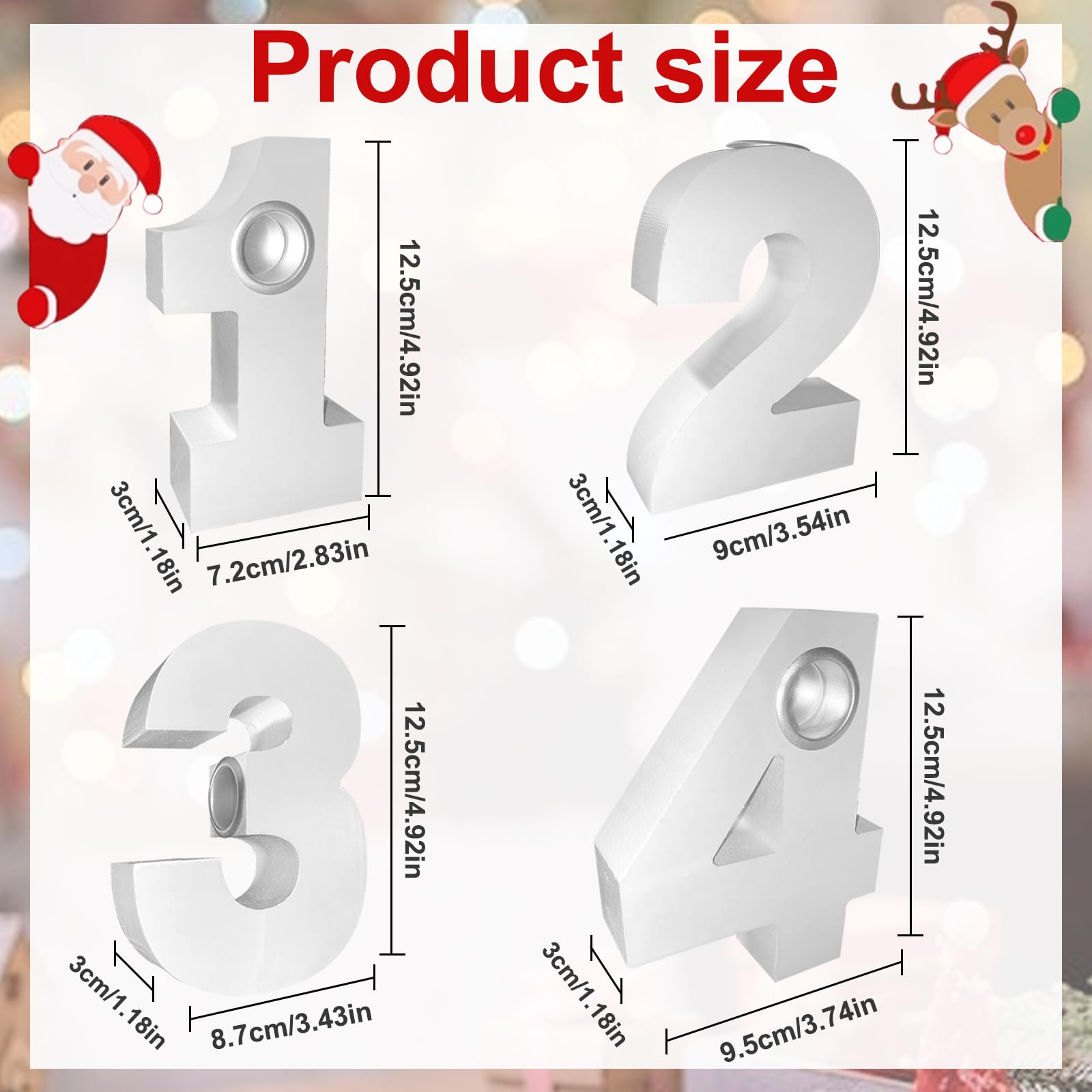 Oh, wie weihnachtlich! Dieses Set mit 4 Adventszahlen aus Holz macht deine Weihnachtsdekoration komplett. Die Zahlen 1-4 sind nicht nur hübsch anzusehen, sondern haben jeweils einen Kerzeneinsatz für schlanke Kerzen (bis 2,3 cm Durchmesser). Aus massivem Holz gefertigt - robust, langlebig und wiederverwendbar. Die sauber verarbeiteten Kanten sind splittersicher, also perfekt für Haushalte mit Kindern. Stell sie auf den Esstisch, ins Wohnzimmer oder auf den Kaminsims - sie sorgen sofort für gemütliche Adventsstimmung. Jeden Sonntag eine Kerze mehr anzünden und die Vorfreude auf Weihnachten genießen! Super praktisch: Die Kerzen stehen sicher und tropfen nicht auf das Holz. Perfekt für romantische Abende, festliche Dekoration oder als Geschenk für Weihnachtsfans. Mach dein Zuhause weihnachtlich warm und einladend - diese Kerzenständer sind ein Must-Have für die Adventszeit!