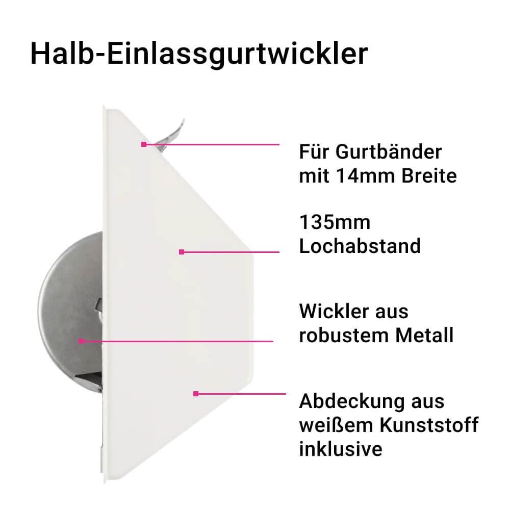 Kennst du das? Der Gurt vom Minigurt baumelt immer irgendwo rum? Mit diesem Halbeinlasswickler ist Schluss damit! Der robuste Wickler aus ABS-Kunststoff nimmt Gurte bis 4 Meter Länge auf - und das ganz sicher mit Verschraubung. Besonders stolz sind wir darauf: Das Teil ist Made in Germany und damit echte Handwerkerqualität! Egal ob beim Neubau oder bei der Sanierung - dieser Wickler macht einfach eine gute Figur. Die Montage ist denkbar einfach und du hast deine Gurte immer ordentlich verstaut. Kein langes Suchen mehr, kein lästiges Aufrollen von Hand. Einfach den Gurt durchziehen und er wickelt sich selbständig auf. So bleibt alles schön ordentlich und du hast mehr Freude an deiner Arbeit. Ein kleines Teil, das einen großen Unterschied macht - probier es aus!