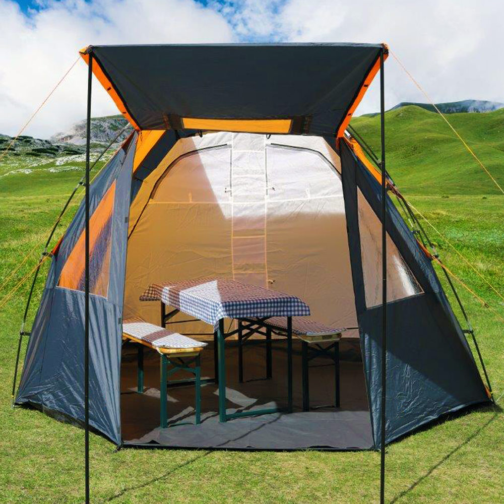 Juhu, ab ins Abenteuer! Dieses KAZOO Zelt ist perfekt für deinen nächsten Camping-Trip. Mit den Maßen 139,7x218,4x109,2cm bietet es genug Platz für 2-4 Personen - je nachdem wie gemütlich es sein soll! Der Clou: Die integrierte Veranda gibt dir extra Stauraum für Gepäck oder als gemütliche Sitzgelegenheit. Das Zelt besteht aus zwei Schichten - das Innenzelt aus B3-Mesh und atmungsaktivem Polyester, die Regenplane aus robustem Ripstop-Polyester. Das Material hat den wasserdichten Test mit über 3000mm bestanden - da bleibt ihr auch bei Regen trocken! Der Aufbau ist super einfach - zwei Personen schaffen das in nur 3 Minuten! Zwei Türen sorgen für bequemen Zugang, und die Haustür kann sogar als Sonnenschutz verwendet werden. Perfekt nicht nur für Camping, sondern auch für Festival, Angeln oder einfach für die Gartenparty! Die Qualitätsdetails überzeugen: Glatte Reißverschlüsse, Netz-Innentaschen und eine stabile Konstruktion. Ob am Strand, im Wald oder auf dem Campingplatz - mit diesem Zelt seid ihr bestens ausgerüstet für euer nächstes Outdoor-Abenteuer!