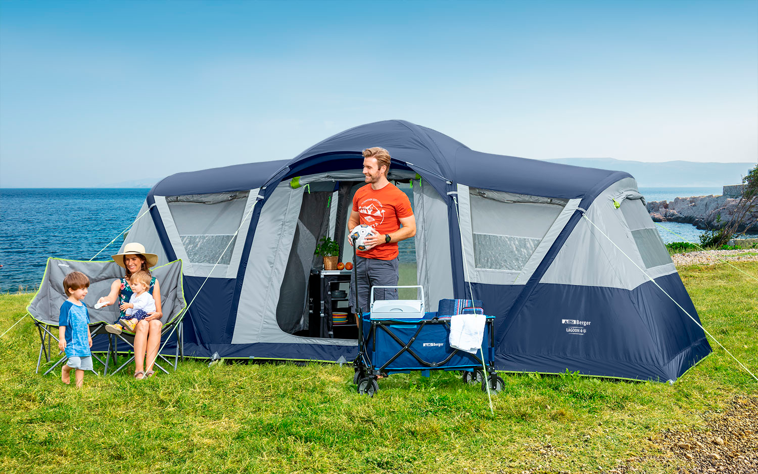 Berger Lagoon Familienzelt 4 Personen - Wasserdichtes Tunnelzelt Mit 2 Eingängen