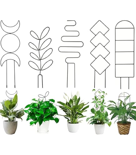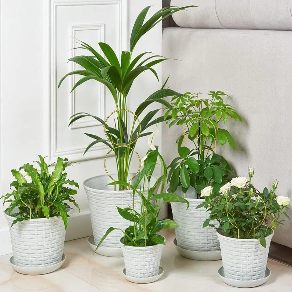 Deine Kletterpflanzen brauchen Halt? Diese 4 goldenen Rankhilfen aus Metall sind die perfekte Lösung! In verschiedenen Formen und Größen (ca. 34cm und 30cm hoch) geben sie deinen Pflanzen den nötigen Support. Hergestellt aus stabilem Eisen mit goldener Beschichtung, sind sie rostfrei und brechen nicht so leicht. Einfach in die Erde stecken - kein Werkzeug nötig - und schon wachsen deine Pflanzen schön daran empor. Perfekt für Hoya, Efeu, Jasmin und viele andere Kletterpflanzen. Sie verhindern, dass Stämme abbrechen, und helfen den Pflanzen, gesünder und üppiger zu wachsen. Sieht nicht nur praktisch aus, sondern ist auch ein echter Hingucker im Zimmer! Super als Geschenk für Pflanzenfans oder um das eigene Zuhause ein bisschen grüner zu machen. Einfach mal ausprobieren, deine Pflanzen werden's dir danken!