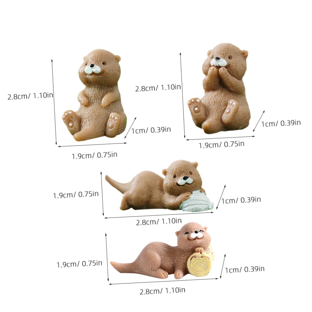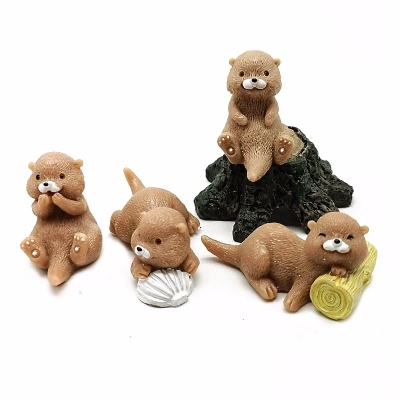 4 Süße Otter Figuren Aus Harz - Perfekt Für Deko, Feengärten & Schlüsselanhänger