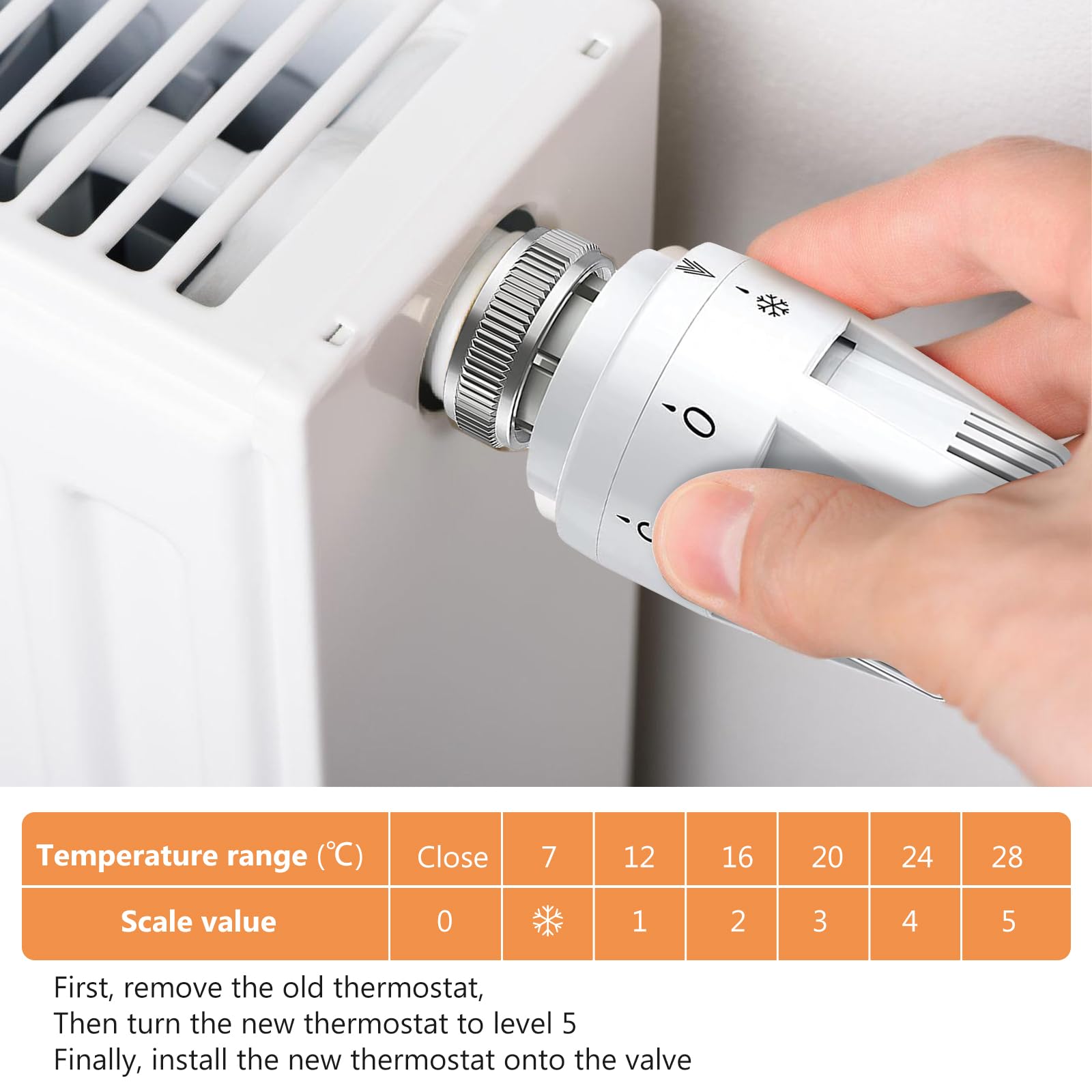 Hey, diese Thermostatköpfe von GOEDCH sind echt praktisch! Im Set bekommst du gleich 4 Stück - perfekt für Bad, Toilette oder andere Räume. Die haben fünf einstellbare Temperaturstufen, sodass du die Heizung genau auf deine Wunschtemperatur einstellen kannst. Das spart nicht nur Energie, sondern sorgt auch für richtig angenehme Wärme. Der integrierte Frostschutz ist genial - besonders im Winter oder in selten genutzten Räumen verhindert er, dass die Heizung einfriert. Das Gewinde M30x1.5 passt super auf die meisten Heizkörper, und die weiße Farbe sieht immer sauber aus. Einbau ist total einfach, aber acht darauf, dass nichts den Thermostatkopf verdeckt - Vorhänge oder Möbel sollten nicht im Weg sein. So kann die Temperatur genau gemessen werden. Regelmäßig mal checken, ob alles okay ist, dann halten die Teile ewig. Einfach ein solides Set für ein besseres Raumklima!