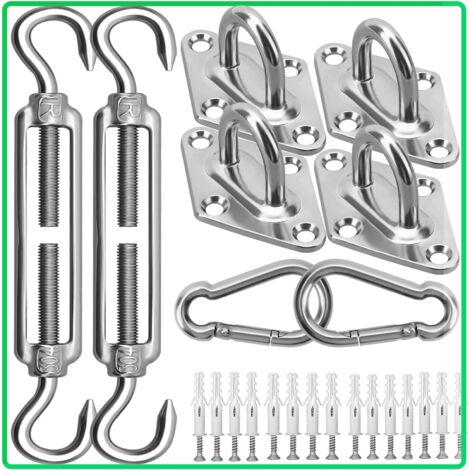 4 Stück Sonnensegel Befestigung Set Edelstahl - Mit 8 Karabinern Für Camping, Zelte & Markisen