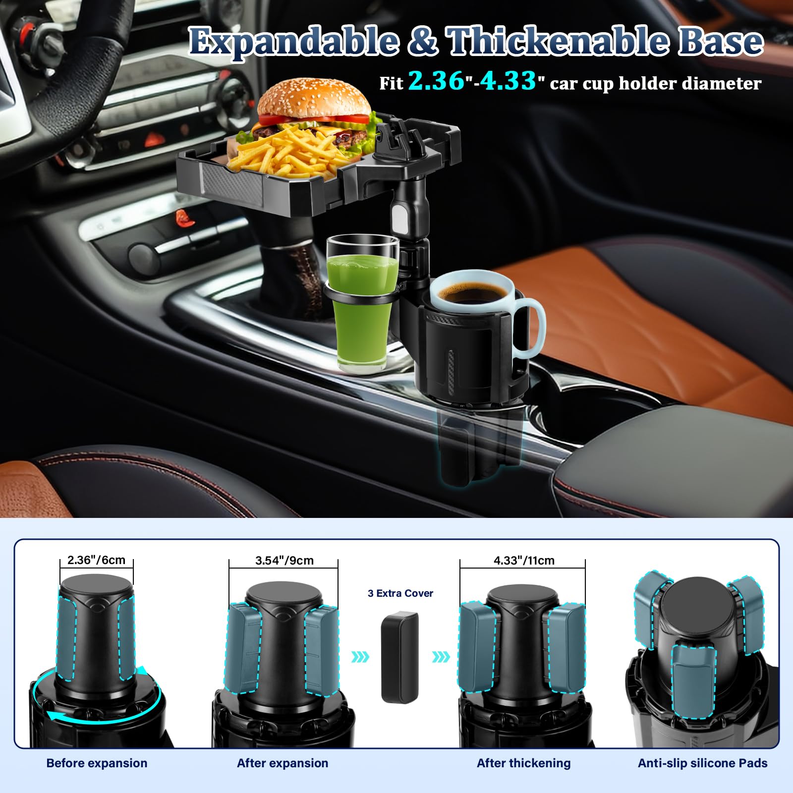 4-in-1 Getränkehalter Auto Mit Handyhalter & Snacktablett | Verstellbarer Becherhalter Für Alle Fahrzeuge