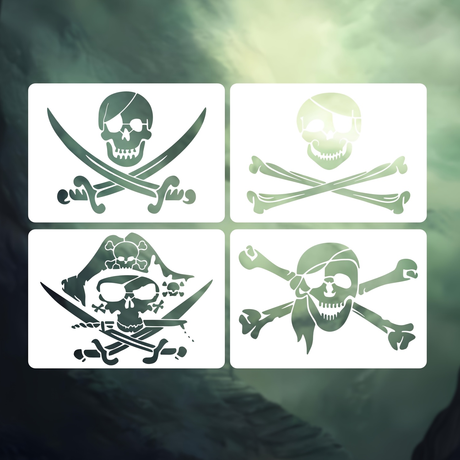 MAYJOYDIY Totenkopf-Schablonen Set - 4-teilig 30x30cm Für Piraten Deko