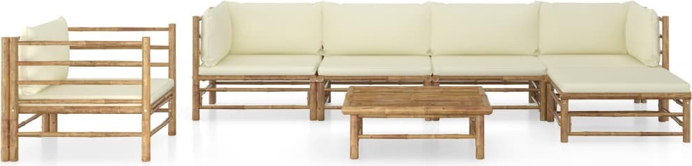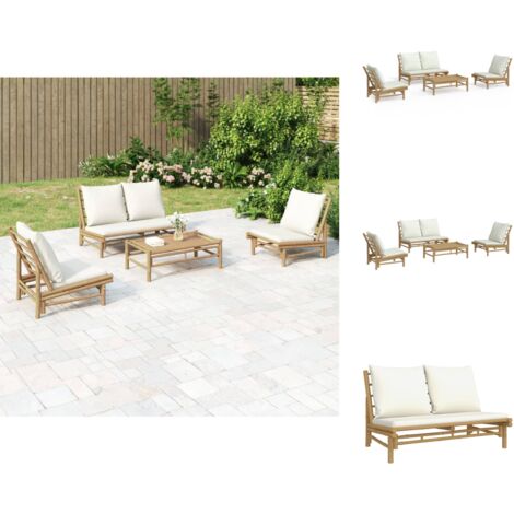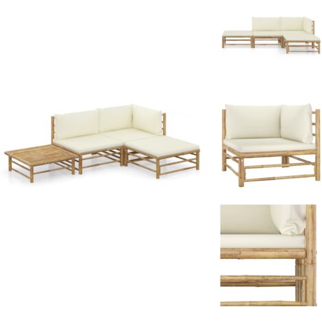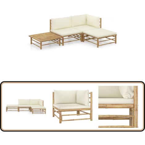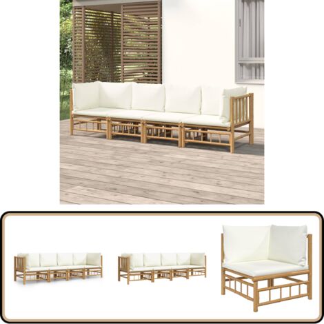 VidaXL Garten Lounge Set 4-teilig - Bambus Sofagarnitur Mit Cremeweißen Kissen