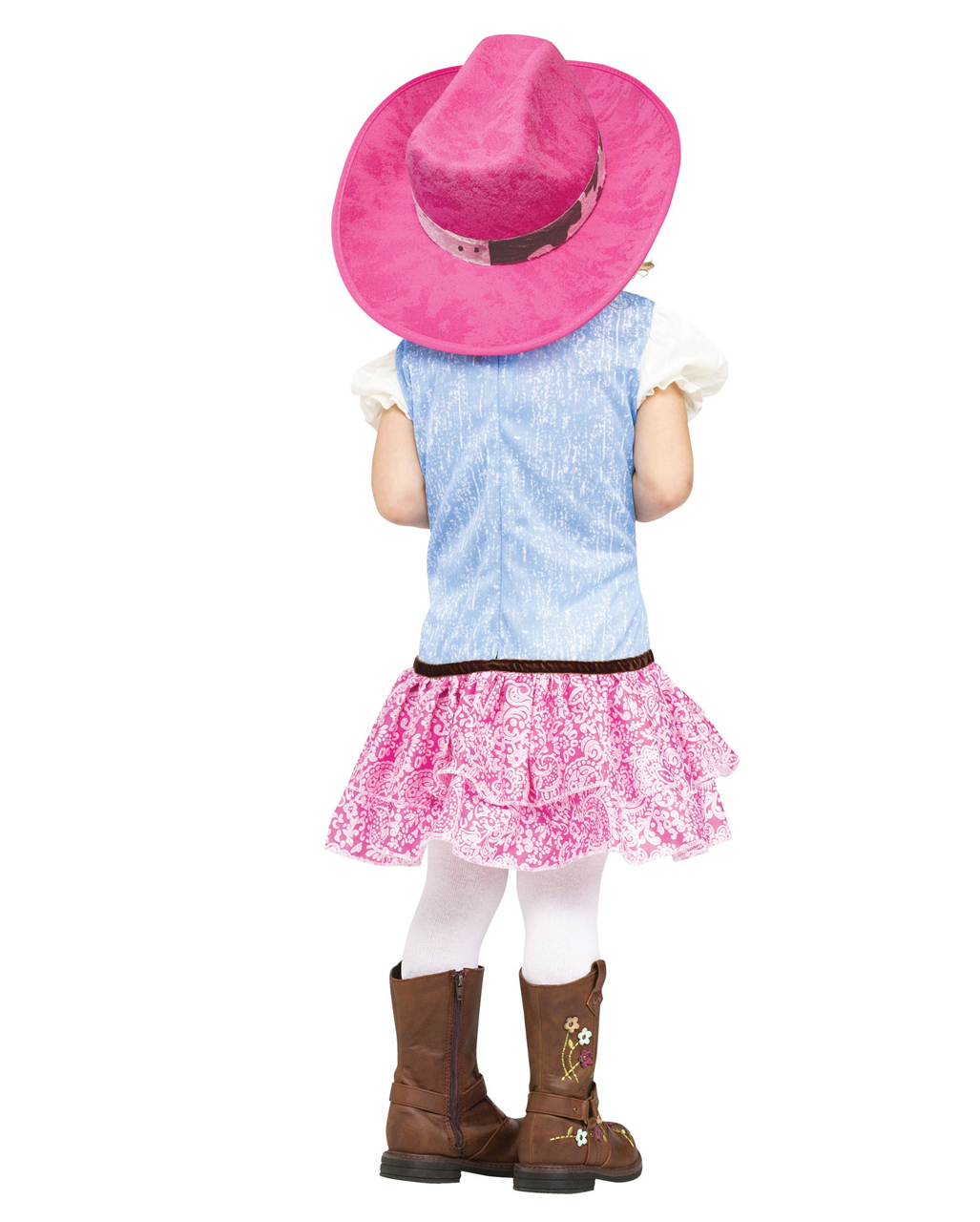 Hey, für alle kleinen Cowgirl-Fans! Dieses total süße 4-teilige Kostüm-Set verwandelt deine Kleine in eine echte Western-Heldin. Im Paket findest du alles, was man braucht: einen coolen braunen Filzhut (der sich übrigens falten lässt - praktisch für unterwegs!), eine echte Fransenweste, einen niedlichen Rock mit Kuhflecken-Muster und ein knallrotes Bandana-Tuch. Einfach ein cooles Hemd drunter ziehen und schon ist der Western-Look perfekt!