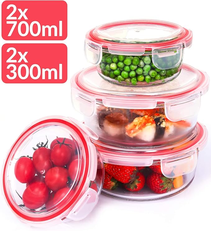 DONDON Frischhaltedosen Set 4-tlg - 400ml Bis 2200ml Luftdicht Für Kühlschrank & Mikrowelle