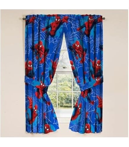 Verwandeln Sie das Zimmer Ihres kleinen Spiderman-Fans in eine Superhelden-Bude! Dieses 4-teilige Vorhang-Set besteht aus zwei Verdunkelungsvorhängen mit je 106,7 x 213,4 cm und zwei passenden Raffhaltern. Hergestellt aus weicher, langlebiger Mikrofaser, blockieren die Vorhänge Licht effektiv und sorgen für gemütliche Räume. Der offizielle Spiderman-Druck begeistert Kinder und Disney-Fans. Die Stangentaschen passen auf Standard-Gardinenstangen (Durchmesser 2,5 cm, Stange nicht im Lieferumfang). Mit den Raffhaltern lässt sich das Tageslicht einfach regulieren. Pflegeleicht: Maschinenwäsche kalt, schonend trocknen. Ein cooles Geschenk für alle, die Action und Gemütlichkeit lieben!