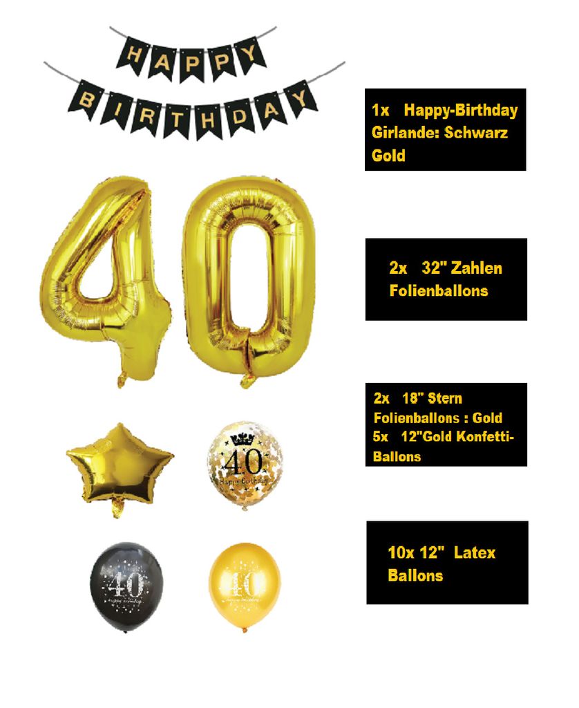 Perfekte Deko für den 40. Geburtstag! Dieses Set mit 10 wunderschönen Luftballons in eleganten Lilatönen macht jede Feier zum Highlight. 5 hellviolette und 5 dunkelviolette Ballons mit je 30,5cm Durchmesser - das sieht einfach klasse aus! Jeder Ballon ist mit '40 Years', funkelnden Sternen, Geschenken und Champagnergläsern bedruckt. Einfach mit Helium oder Luft befüllen und mit den goldenen Bändern befestigen. Ob als Tischdekoration, an der Decke oder als Fotohintergrund - diese Ballons sorgen für die richtige Party-Stimmung. Die harmonische Farbkombination in Lila ist stilvoll und passt zu jeder Einrichtung. Mach den 40. Geburtstag unvergesslich mit dieser tollen Ballon-Deko!