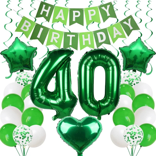 40. Geburtstag Luftballons Set - 16 Stück Grüne Deko Mit Konfetti