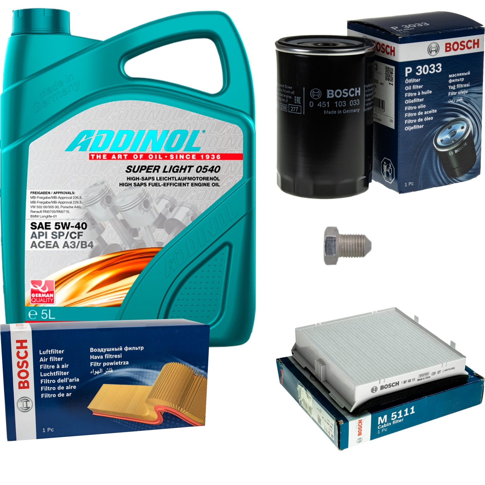 Alles aus einer Hand für deinen Renault mit 1.5 dCi Motor! Dieses Komplett-Set enthält alles für einen professionellen Ölwechsel: 5L EXTREME 5W-40 Motoröl, Ölablassschraube, Ölwechsel-Anhänger, Innenraumluftfilter, Luftfilter, Ölfilter und Kraftstofffilter. Das hochwertige Motoröl mit Ester-Technologie ist perfekt für moderne Diesel-Motoren mit Turbolader - ob bei Kaltstart, Stadtverkehr oder Autobahn. ACEA A3/B4, API SN/CH-4 und viele weitere Freigaben. Wichtig: Vorher mit HSN/TSN aus dem Fahrzeugschein die Kompatibilität prüfen! Spare Zeit und Geld indem du alle Teile auf einmal bekommst - kein lästiges Zusammensuchen einzelner Komponenten. Über 6700 verschiedene Inspektionspakete haben unsere Experten bereits zusammengestellt. Perfekt für Heimwerker oder Werkstätten - mach deinen Renault fit für die nächsten Kilometer!
