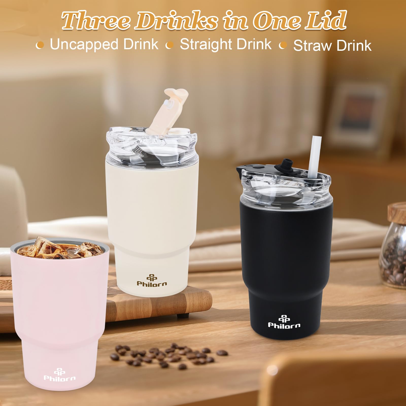 Philorn Thermobecher 400ml - Wiederverwendbarer Kaffeebecher Mit Deckel & Strohhalm