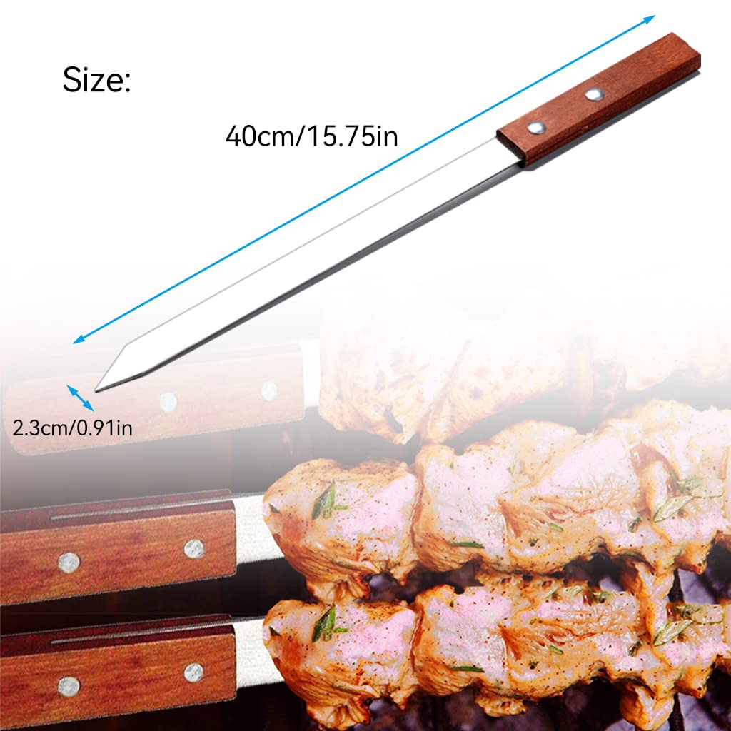 12x Edelstahl Grillspieße Mit Holzgriff - 40cm Flachspieße Für Kebab, Schaschlik & Gemüse, Inkl. 2 Grillpinsel