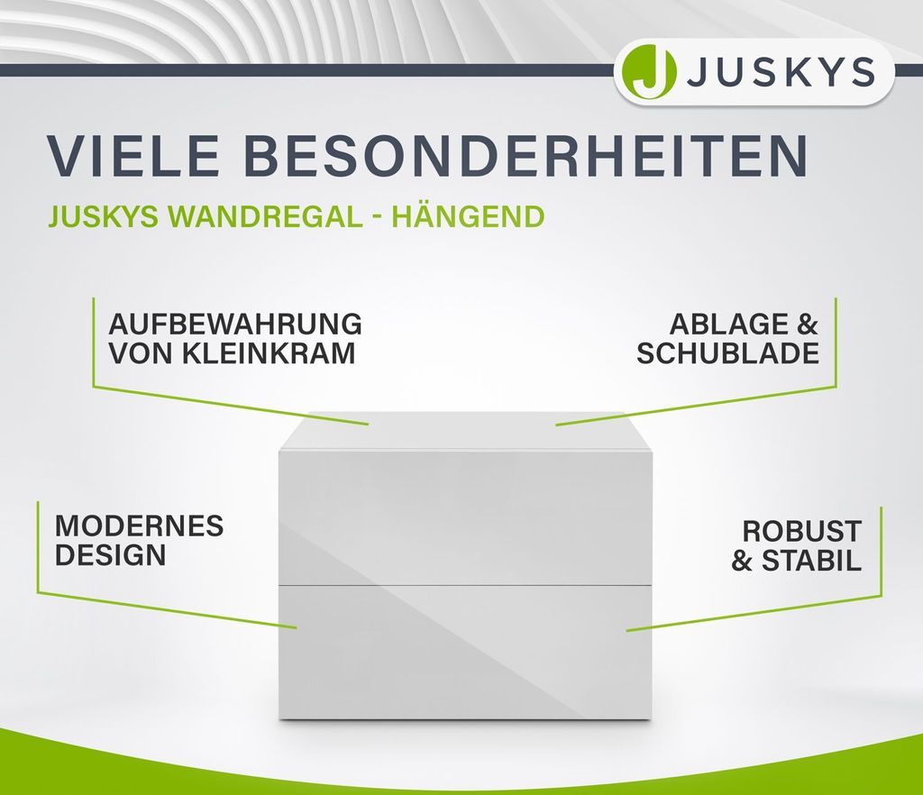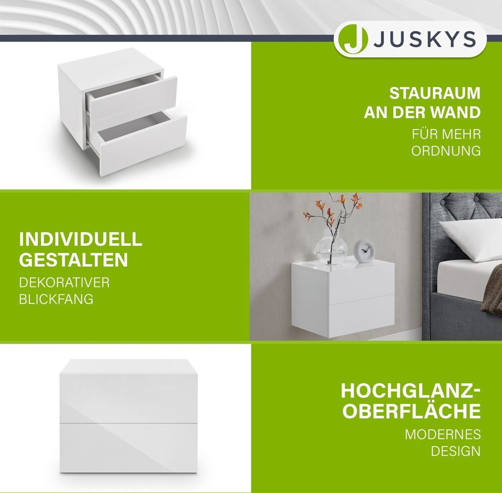 Platzsparende Lösung für kleine Räume! Dieser Wand-Nachttisch von Juskys hat 2 praktische Schubladen und eine Ablagefläche - alles in schwarzem, modernem Design. Maße: 40x29x30cm (BxTxH) - kompakt aber funktional. Einfach an die Wand montieren und schon hast du Stauraum für Wecker, Buch, Handy und andere Kleinigkeiten. Jede Schublade trägt bis 5kg - also genug für die wichtigsten Dinge. Perfekt fürs Schlafzimmer, aber auch im Flur oder Wohnzimmer einsetzbar. Mit Melamin-Oberfläche - pflegeleicht und kratzfest. Einfach mit feuchtem Tuch abwischen. Montagematerial ist dabei - also schnell aufgebaut. Schwebt über dem Boden - macht den Raum optisch größer und ist super zum Saubermachen. Für alle, die Ordnung lieben aber nicht viel Platz haben. Sieht teuer aus - ist aber erschwinglich!