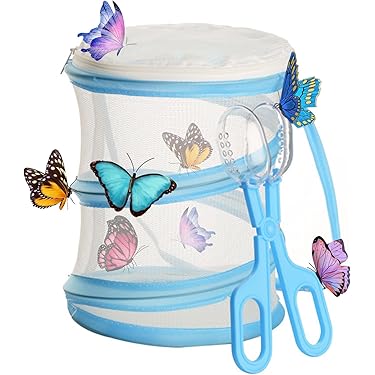 Entdecken Sie die faszinierende Welt der Schmetterlinge! Dieser transparente Insektenkäfig ist perfekt, um die Verwandlung von der Raupe zum Schmetterling live mitzuerleben. Mit den Maßen 40x30x40cm bietet er ausreichend Platz für Ihre kleinen Gäste. Das feine Netz sorgt für optimale Belüftung und die transparente Machart ermöglicht einen freien Blick auf das Geschehen. Aus stabilen PVC-Rohren und hochwertigem Netzmaterial gefertigt, ist dieser Käfig leicht (nur 386g) und doch robust. Einfach zusammenzubauen - das Set enthält alles was Sie brauchen: Netzabdeckung, 8 lange Rohre, 4 kurze Rohre und 8 Stecker. Perfekt für Kinder, Schulen oder Naturliebhaber, die die Metamorphose beobachten möchten. Ob im Klassenzimmer, auf dem Balkon oder im Garten - dieses Habitat bringt Natur direkt zu Ihnen. Ein wunderbares Lehrmittel und ein spannendes Erlebnis für Groß und Klein. Beobachten Sie, wie Raupen sich verpuppen und zu wunderschönen Schmetterlingen werden - ein echtes Naturwunder zum Anfassen!