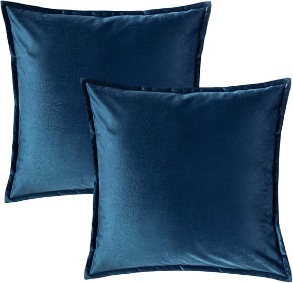 Samt Kissenbezüge 40x40cm 2er Set Navy - Mit Goldlinien Für Sofa & Wohnzimmer
