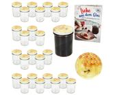 Marmelade, Chutney, Eingemachtes - mit diesen 50 Sturzgläsern machst du deine eigenen Köstlichkeiten haltbar! Jedes Glas hat 435 ml Fassungsvermögen (Trinkmenge 400 ml) und ist ca. 11,4 cm hoch bei 8,2 cm Durchmesser. Die Twist-Off Deckel mit dem süßen Holz-Herz-Dekor in rotkariert sehen nicht nur gut aus, sondern schließen auch luftdicht ab. Im Lieferumfang ist sogar ein Gratis-Rezeptheft mit vielen leckeren Ideen dabei - falls dir mal die Inspiration fehlt. Die Gläser sind super vielseitig: Nicht nur für Konfitüre, Mus und Gelee, sondern auch für eingelegtes Gemüse, Kräuter, Suppen, Saucen oder sogar Babynahrung. Und sie sind backofengeeignet und können eingefroren werden - was will man mehr? Spülmaschinenfest sind die Gläser auch (nur die Deckel bitte von Hand waschen). Bei Heißabfüllung hält sich der Inhalt bis zu 3 Jahre - aber seien wir mal ehrlich, so lange wird's bei so leckeren Sachen bestimmt nicht durchhalten! Temperatursprünge solltest du vermeiden (also kein heißes Glas in kaltes Wasser stellen), und von Mikrowelle oder ölhaltigen Lebensmitteln raten wir ab. Die Deckel solltest du nach einmaligem Gebrauch austauschen für optimale Frische. Egal ob du Einmach-Anfänger oder alter Hase bist - mit diesem Set bist du bestens ausgestattet. Deine eigene Marmelade schmeckt doch eh am besten, oder?