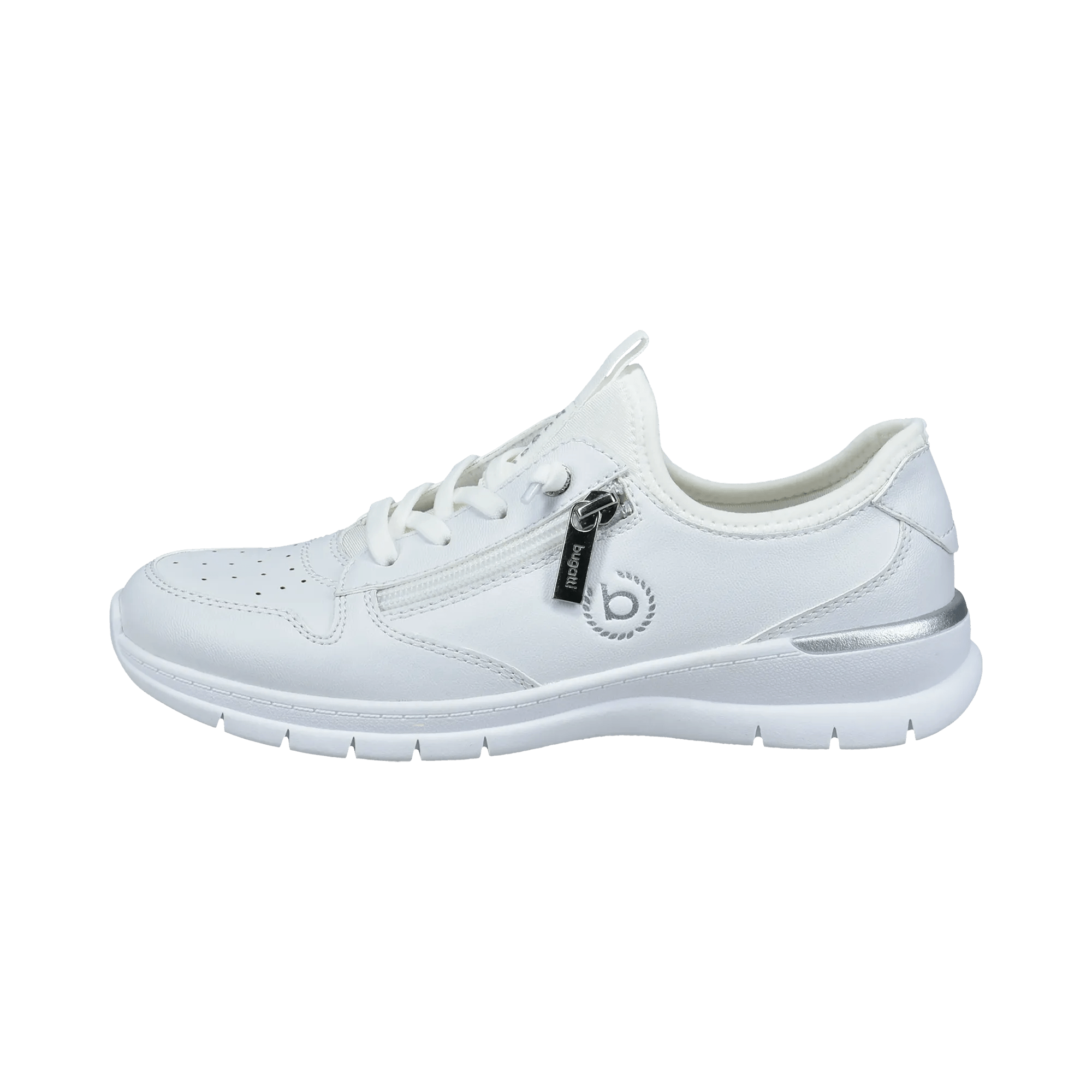 Diese bugatti Damen-Slipper sind so bequem, du willst sie nie mehr ausziehen! Die innovative elastische Schnürung macht das An- und Ausziehen super einfach - kein lästiges Binden mehr. In schickem Weiß mit dezenten Perforationen für optimale Luftzirkulation - deine Füße bleiben den ganzen Tag frisch. Der Reißverschluss-Akzent gibt den Sneakern nen modernen Touch, und die Naht-Details auf der Zwischensohle sehen einfach klasse aus. Richtig federleicht - merkst du kaum am Fuß! Perfekt für Stadtbummel, Büro oder Freizeit. Kombinierbar mit Jeans, Röcken oder Kleidern - einfach vielseitig. Echte bugatti-Qualität, die sich im Alltag bewährt. Deine neuen Lieblingsschuhe für jeden Tag!