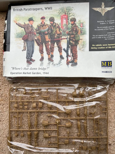 Master Box Britische Truppen Caen 1944 | 4 Unbemalte Figuren Mit Ausrüstung | Modellbau 2. Weltkrieg