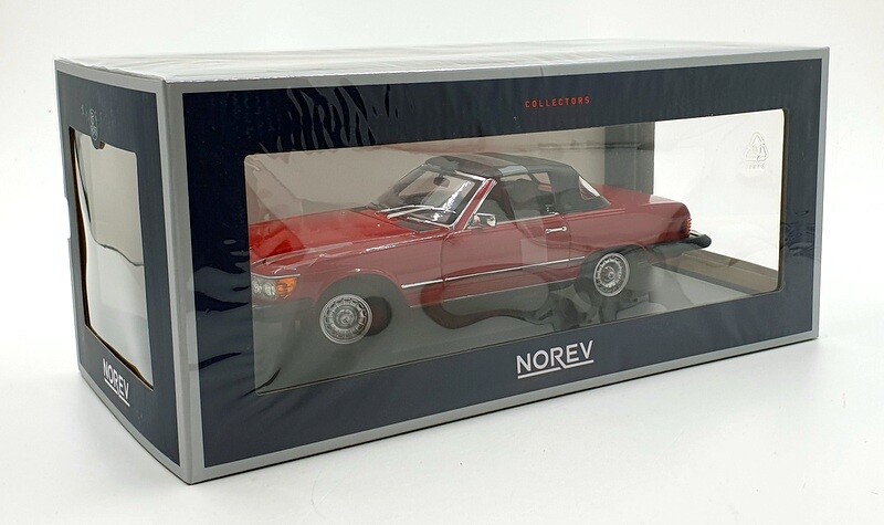 Ein Traum in Rot! Dieses detailgetreue Norev Modellauto im Maßstab 1:18 zeigt den legendären Mercedes 450 SL US Version von 1979. Aus hochwertigem Metall mit vielen realistischen Details. Türen und Motorhaube sind zu öffnen, das Lenkrad ist beweglich. Ein Must-Have für jeden Auto-Enthusiasten und Sammler. Offiziell lizenziert von Mercedes-Benz. Nicht für Kinder unter 14 Jahren geeignet - ein reines Sammlerstück. Hol dir diesen Klassiker in deine Vitrine und genieße den timelessen Design des Roadsters.