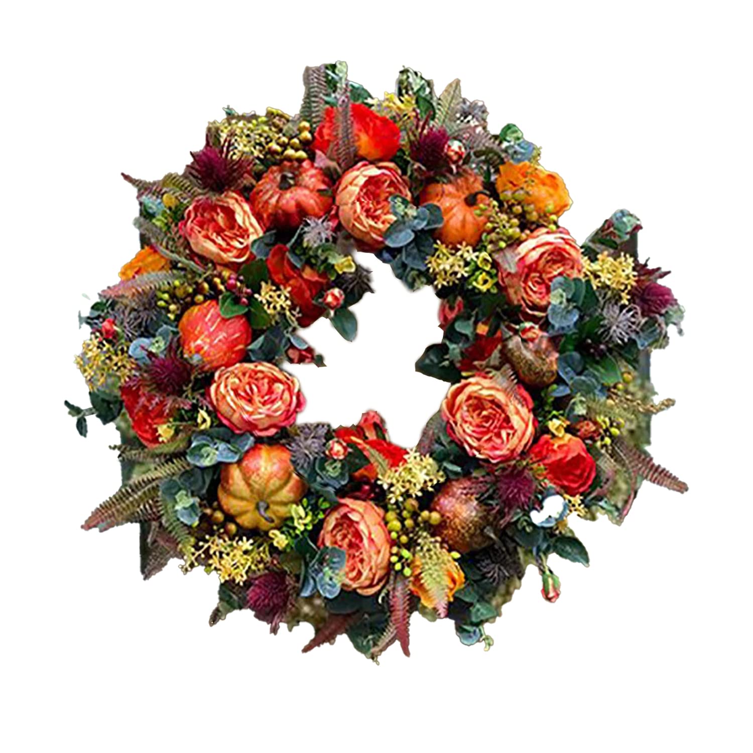 Bring herbstliche Gemütlichkeit an deine Tür! Dieser wunderschöne Herbstkranz besteht aus Kunststoff und Rattan und ist verziert mit naturgetreuen Ahornblättern, Lotoskapseln und Beeren. Mit seinen Maßen von 37x45x3,5 cm (Innenring 30x30x3,5 cm) ist er der perfekte Blickfang für deine Haustür, Fenster, Kamin oder Wand. Das Beste: Die Deko ist absolut pflegeleicht - kein Gießen, kein Verblassen, einfach aufhängen und Jahre lang Freude dran haben! Der Kranz wiegt nur 181g und kommt komplett fertig zusammengestellt bei dir an. Egal ob für drinnen oder draußen, dieser Kranz sorgt überall für herbstliche Stimmung. Perfekt nicht nur für den Herbst, sondern auch für Thanksgiving, Erntedankfeste oder sogar als vorweihnachtliche Deko. Mach dein Zuhause mit diesem vielseitigen Dekoelement gemütlich und einladend!