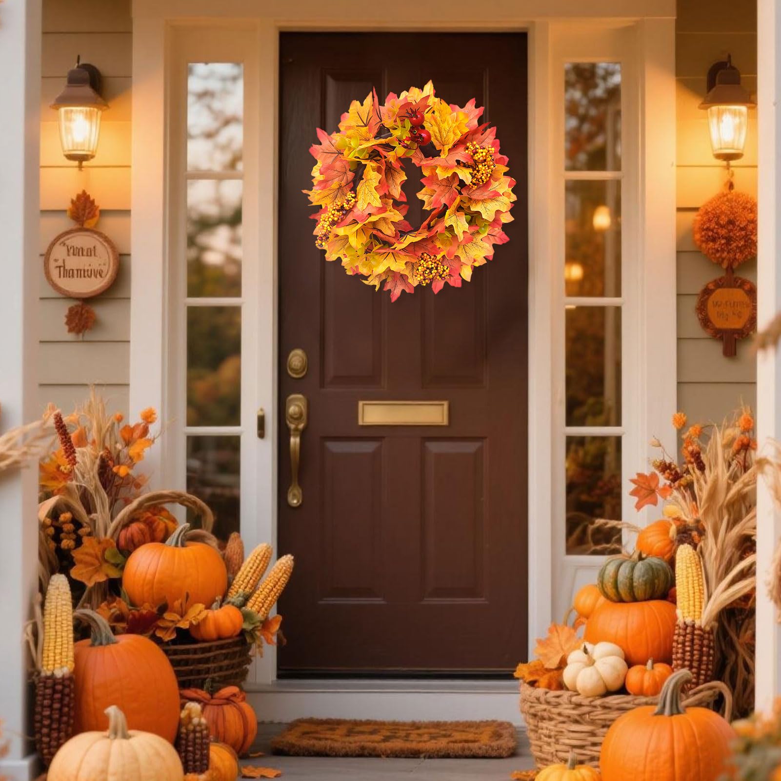 Herbstkranz Für Die Haustür - 45cm Türkranz Mit Ahornblättern & Lotoskapseln Für Herbstliche Deko