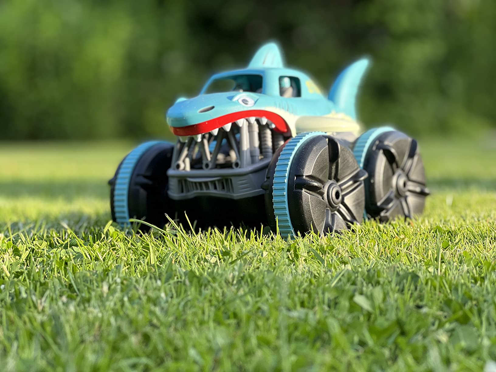 Wow, dieses Todeco RC Auto geht nicht nur auf der Straße, sondern auch ins Wasser! Ein echtes Amphibienfahrzeug das sowohl an Land als auch auf dem Wasser fährt. Mit 2.4Ghz Technologie - mehrere Autos können gleichzeitig fahren ohne Störungen. Reichweite bis zu 30 Meter! Coole LED-Lichter machen es auch bei Nacht zum Hingucker. Die 4 Räder mit rutschfesten Riemen sorgen für guten Grip auf jedem Untergrund. 360° Drehungen und 180° Vorwärts/Rückwärts - total wendig! Aus robustem ABS-Kunststoff - wasserdicht, abriebfest und langlebig. Perfekt für Kinder ab 6 Jahren - fördert Geschicklichkeit, Gleichgewicht und motorische Fähigkeiten. Ideal für Strand, See, Wiese oder Park. Ein super Geschenk für Geburtstage, Weihnachten oder einfach so!